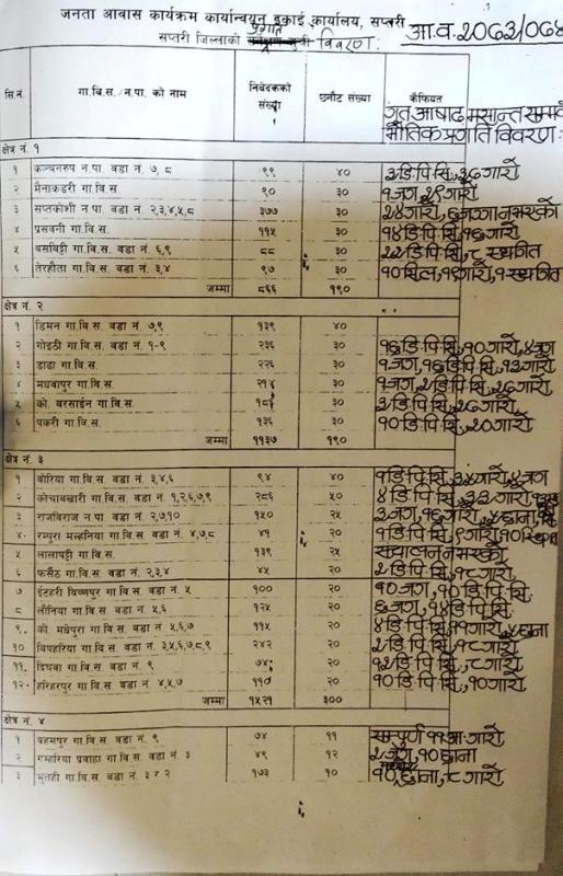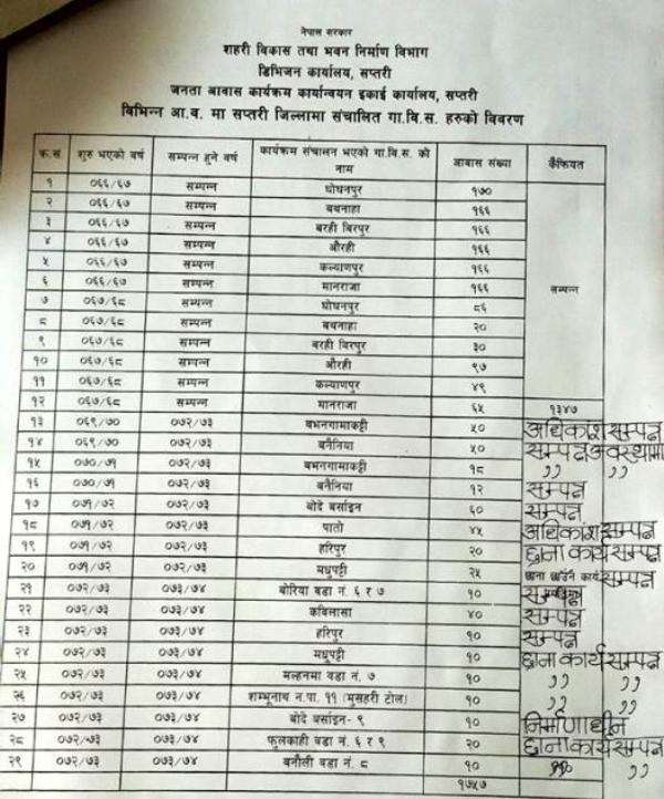 तर, कर्मचारीहरुकै अनुसार आव २०६९/७० देखिकै पनि कतिपय घर सम्पन्न हुन बाँकी छन्।