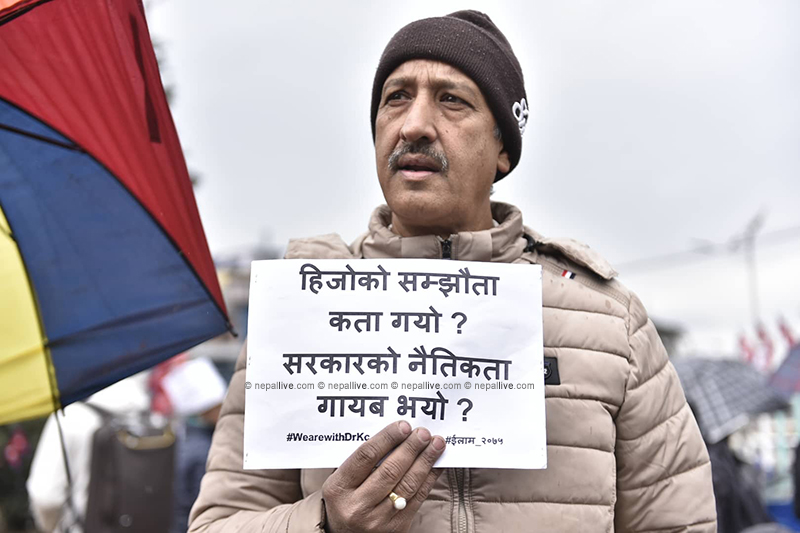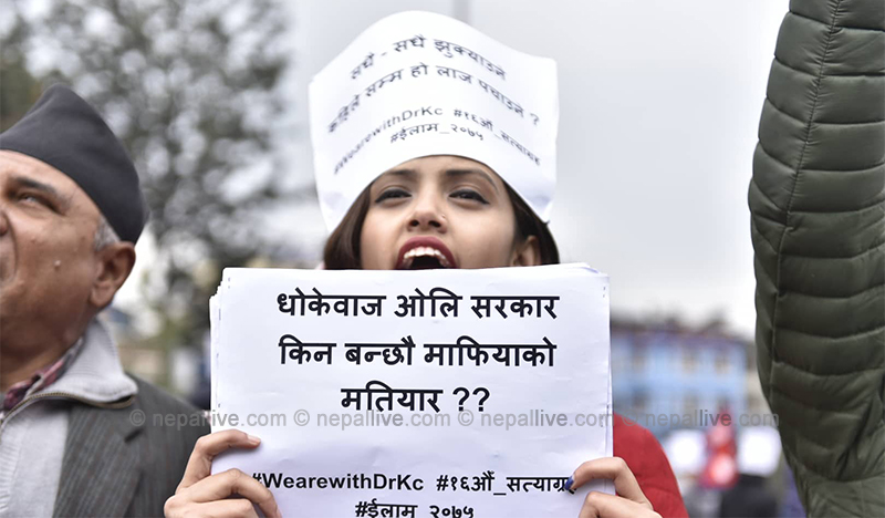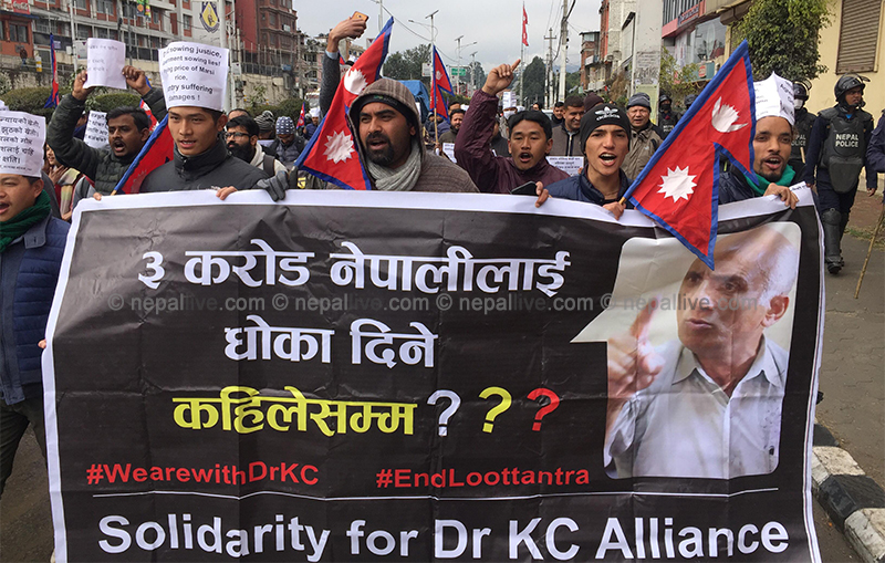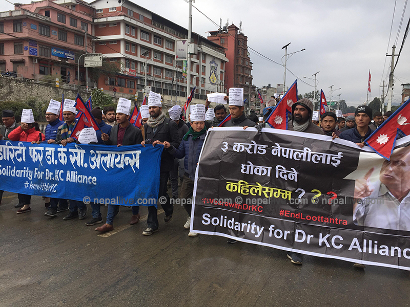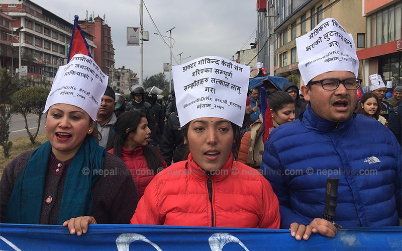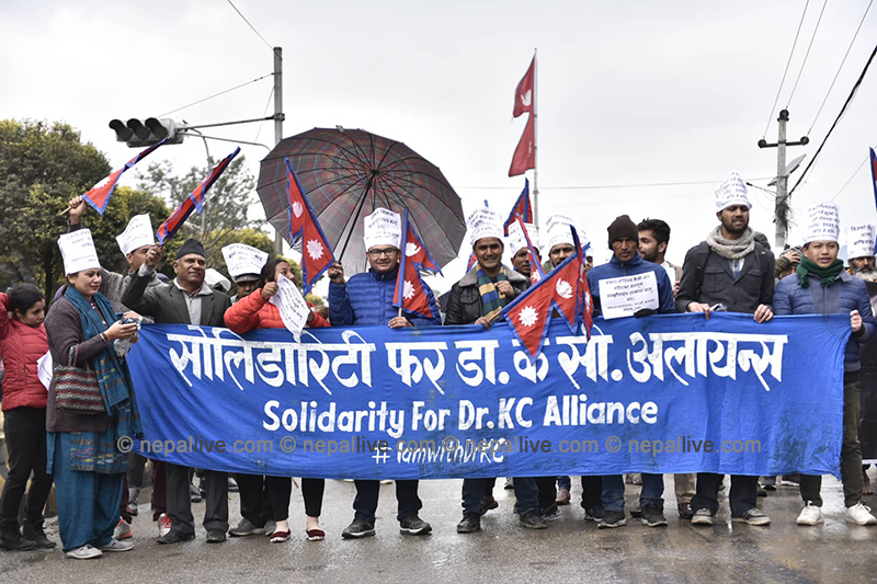 काठमाडौं- अनसनरत डा गोविन्द केसीको पक्षमा सोलिडारिटी फर डा केसी अलायन्सको अगुवाइमा आज काठमाडौंमा प्रदर्शन गरिएको छ।