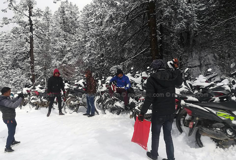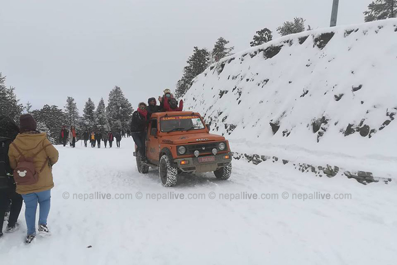 हिउँ खेल्न जानेको भिडका कारण काठमाडौं चरिकोट खन्डको सडकमा सवारी चापसमेत बढेको छ। सोही कारण ठाउँठाउँमा सवारी जामसमेत भइरहेकाे ट्राफिक प्रहरीले जनाएकाे छ।