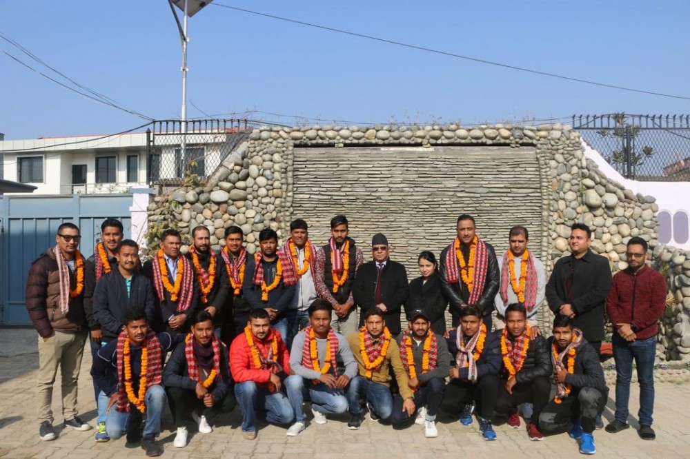 अध्यक्षलाई भेट्न नेपाली राष्ट्रिय टिमका खेलाडीहरु खुमलटार पुगेका थिए।