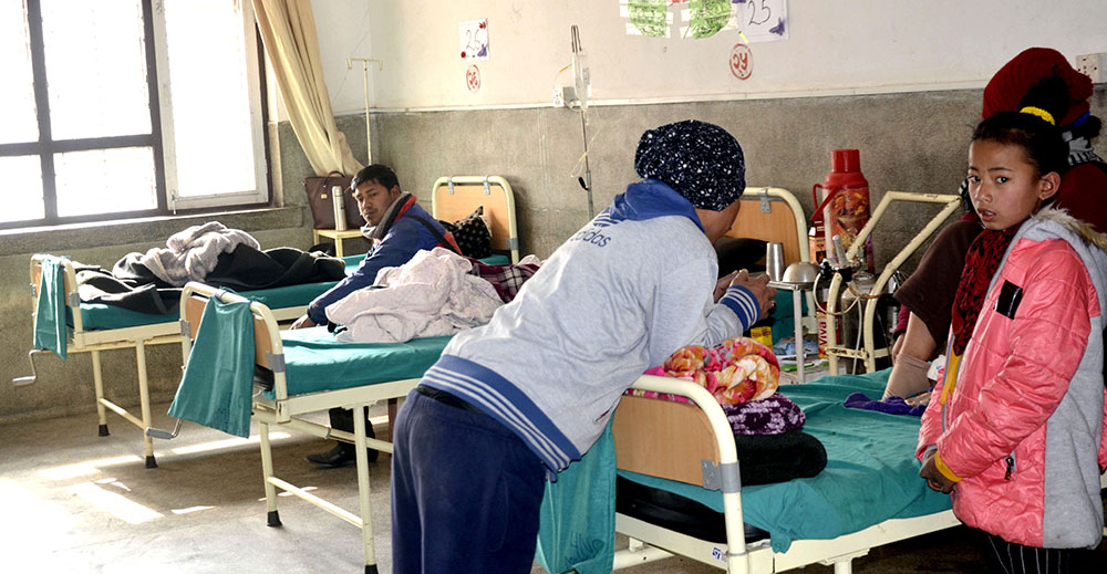 अस्पतालका वरिष्ठ अहेव शंकर पाण्डे भौतिक पूर्वाधरको अभावका कारण आफूहरुले दुःख गरेर काम गर्नुपरेको गुनासो गर्छन्। ‘ठाउँ अलि कन्जस्टेड छ, हामी त्यो स्वीकार्छौं,’ उनको भनाइ छ, ‘भवन राम्रा छैनन्। धेरै फिभर केस आउँछन्। हामी अझै पनि भूकम्पले टाँसेको ‘रेड जोन’मै बसेर सेवा दिइरहेका छौं।’