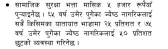 निर्वाचनअघिका चुनावी भाषणमा पार्टी अध्यक्ष केपी शर्मा ओलीले वृद्धभत्ता ५ हजार वितरण गरिने बताएकाले अहिले यही कुराले सरकारलाई अप्ठ्यारोमा पारेको थियो।