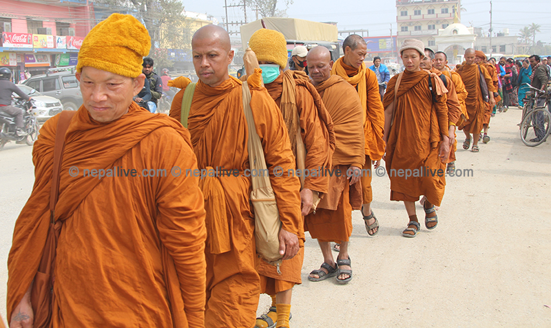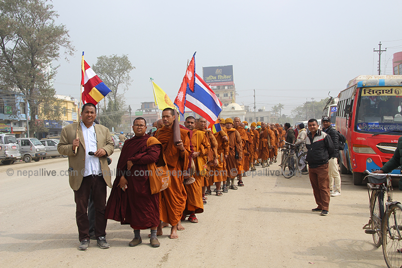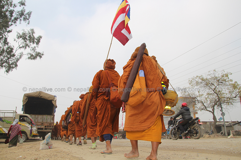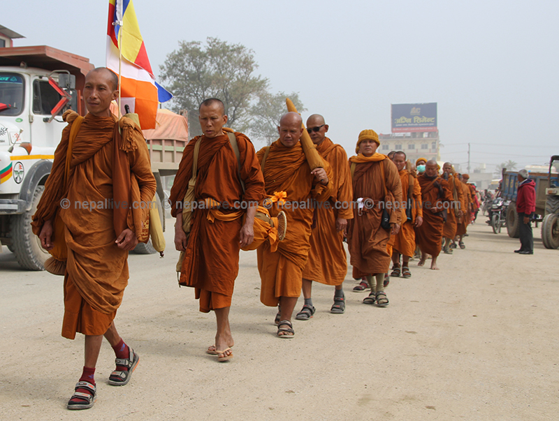 विगतका वर्षहरुमा भिक्षुहरुले बुद्धले ज्ञान प्राप्त गरेको स्थल भारतको बोधगायाबाट लुम्बिनीमा आउने गरे पनि यस पटक भने उनीहरु काठमाडौंबाट आएका हुन्। उनीहरु भोलि बुद्धको नगरी तिलौराकोट जाने कार्यक्रम छ।