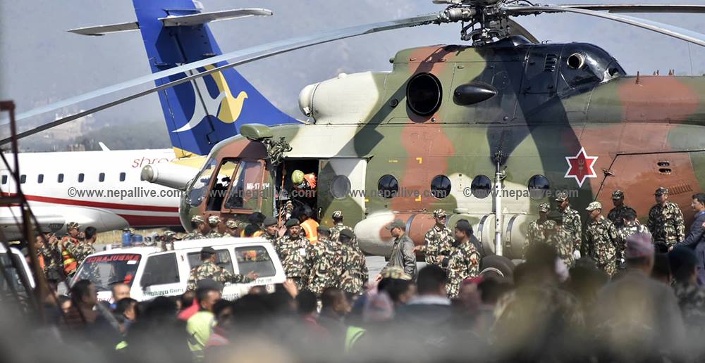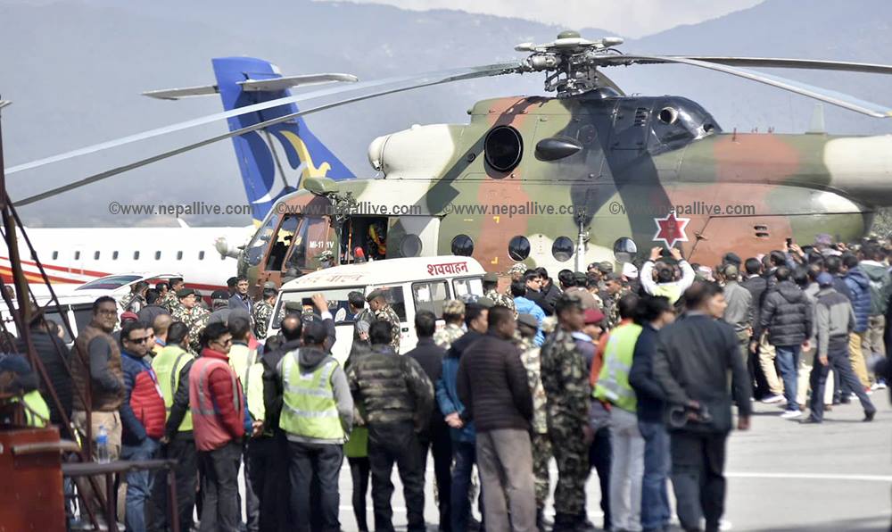 काठमाडौं– हेलिकोप्टर दुर्घटनामा निधन भएका संस्कृति, पर्यटन तथा नागरिक उड्ययन मन्त्री रवीन्द्र अधिकारीसहित ७ जनाको शव काठमाडौं ल्याइएको छ।