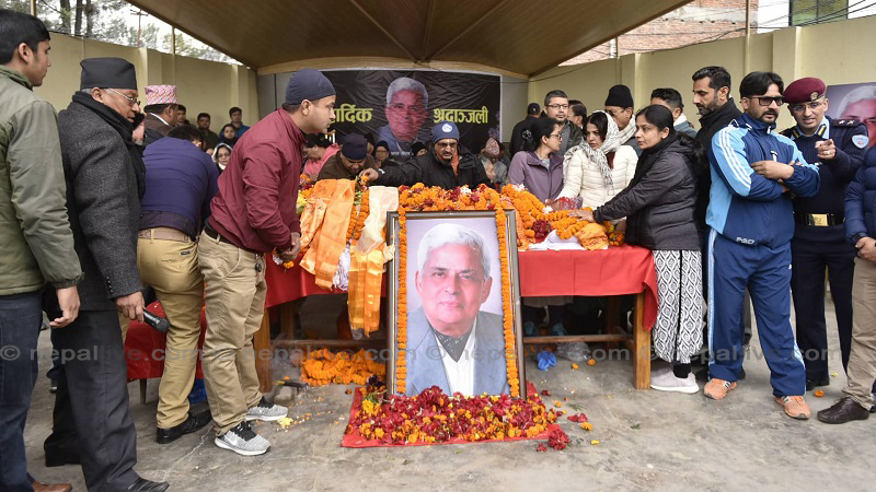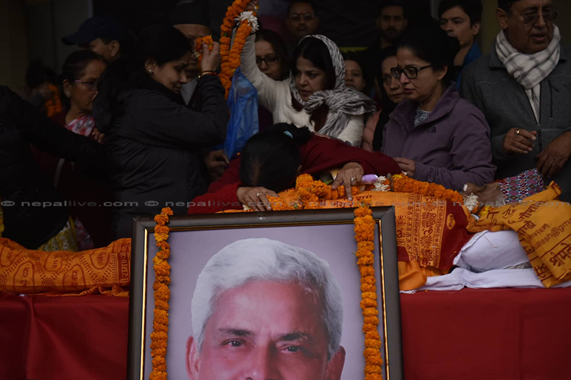 काठमाडौं– शनिबार निधन भएका नेकपाका नेता तथा पूर्व अर्थमन्त्री भरतमोहन अधिकारीको पार्थिव शरीर अन्तिम श्रद्धात्र्जली अर्पणका लागि नेकपा पार्टी कार्यालय धुम्बाराहीमा राखिएको छ।। बिहान ९ बजेदेखि सुरु भएको सभा दिउँसो १२ बजेसम्म जारी रहनेछ।