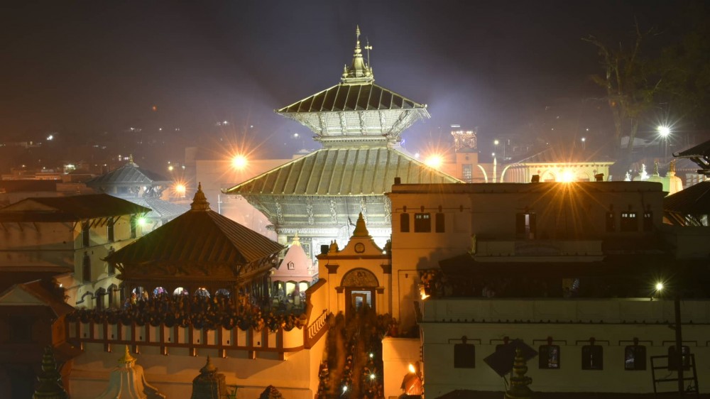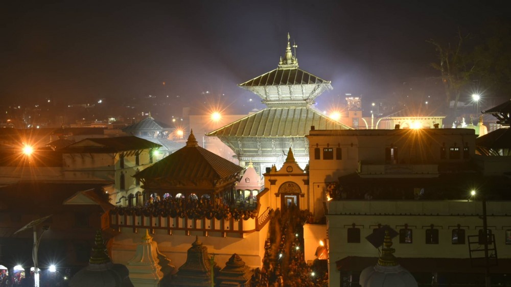काठमाडौं- महाशिवरात्रीको अवसर पारेर काठमाडौंस्थित पशुपति मन्दिरमा सजाएर झकिझकाउ पारिएको छ। बत्तीले सजाइएको मन्दिर साँझको समयमा मनमोहक देखिने गरी व्यवस्था गरिएको छ।