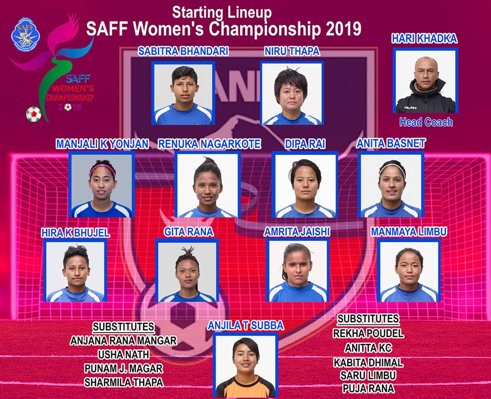 पहिलो हाफ सकिदा नेपालले २–० गोलको अग्रता दिलाएको छ। नेपालका लागि मन्जली कुमारी योन्जन र सावित्रा भण्डारीले गोल गरेका छन्। मन्जलीले खेलको १३ र सावित्राले १६ मिनेटमा गरे। यद्यपी नेपालले पहिलो हाफमा पाएका आधा दर्जन अवसरलाई भने सदुपयोग भने गर्न सकेन।