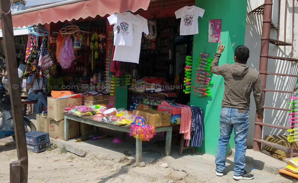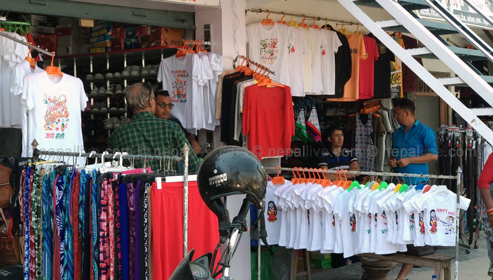 धनुषा रमदैयाका दिपक यादव साेमबार बिहान महेन्द्रनगर बजारमा होलीका लागि टिसर्ट छान्दै थिए। भाइ र बहिनीलाई टिसर्ट किनिदिन महेन्द्रनगर पुगेका दिपेश यादवले आफूलाई पनि 'ह्याप्पी होली' लेखेको टिसर्ट किने। हरिहपुरकी रीता घिमिरेले पनि महेन्द्रनगरमा छोराछोरीलाई होलीको टिसर्ट किनिदिइन्।
