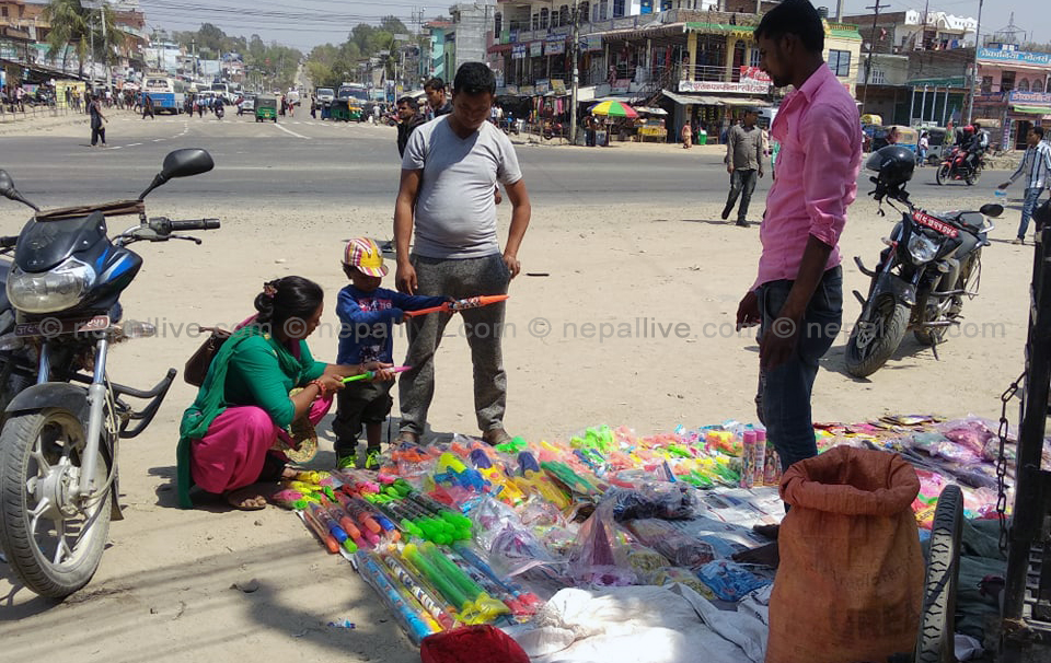 जनकपुरका व्यापारी मनोज गुप्ताका अनुसार याे समयमा सबैभन्दा बढी पिचकारी र बेलुन बिक्री हुन्छ। केटाकेटीले बढी पिचकारी र बेलुन खोज्छन्। अनुहार रंगाउने सिल्भर, गोल्डेन कलरको बिक्री पनि बढेको छ।
