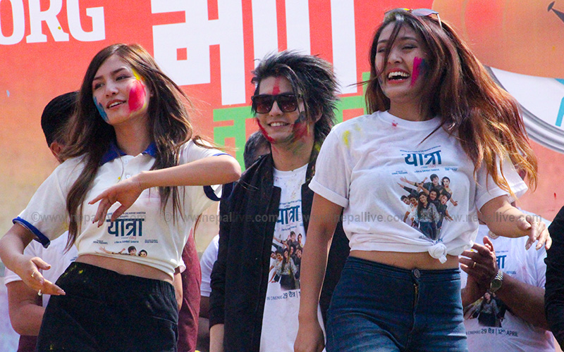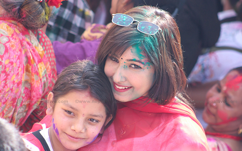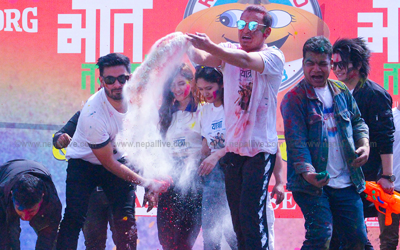 एक अर्कामा रङ लगाउदै कलाकर्मीहरुले सम्पूर्ण नेपालीमा खुसी र उमंगको कामना गरे। यससँगै देशमा पछिल्ला राजनीतिक घटनालाई लिएर चिन्ता व्यक्त गर्दै राजनीतिक दलले वार्ता र सहमतिका आधारमा देशमा शान्ति सुरक्षाको प्रत्याभूति दिलाउन समेत कलाकारले सुझाएका छन्।