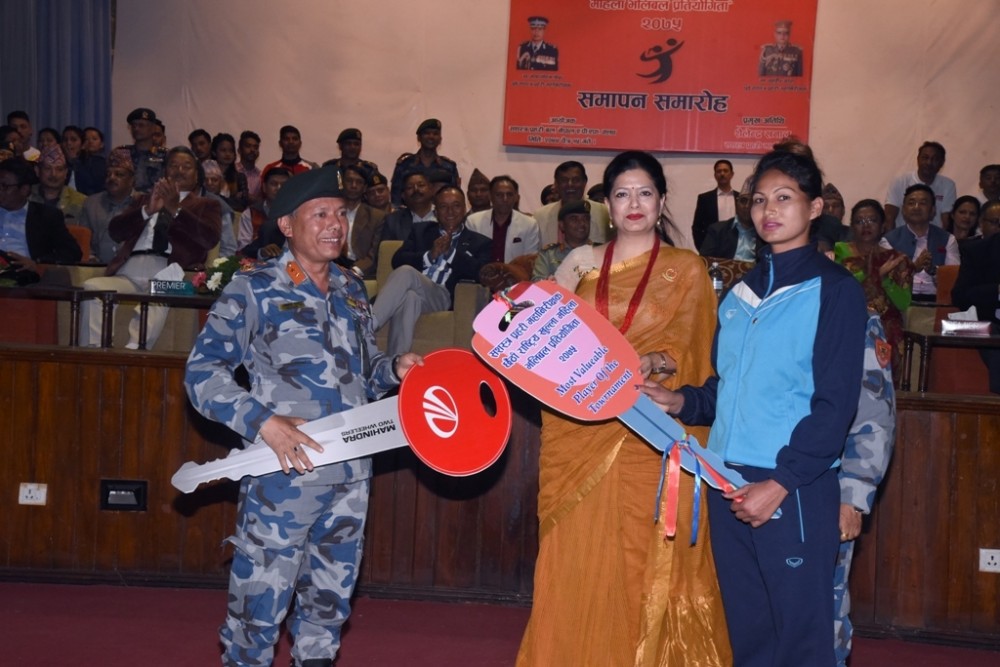 प्रतियोगितामा नेपाल एपीएफ क्लवका महिला भलिबल टिमकी रेश्मा भण्डारी उत्कृष्ट भइन्। उनले स्कुटर प्राप्त गरिन्।