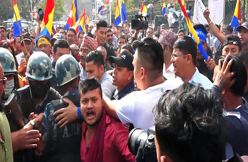 काठमाडाैं- राष्ट्रिय प्रजातन्त्र पार्टी नेपालले धर्मनिरपेक्षताको विरोध र राजासहितको लोकतन्त्र स्थापनाका लागि सर्वपक्षीय गोलमेच सम्मेलनको माग गर्दै राजधानीमा प्रदर्शन गरेको छ।