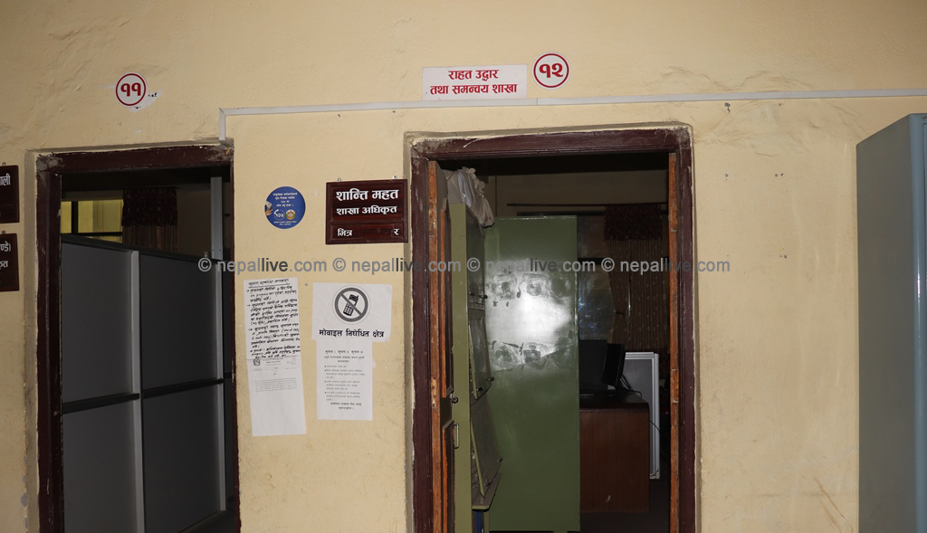 तीनैजना साढे दुई बजे विभागको राहत, उद्धार तथा समन्वय शाखा कोठा नं १२ मा उभिइरहेका भेटिए।