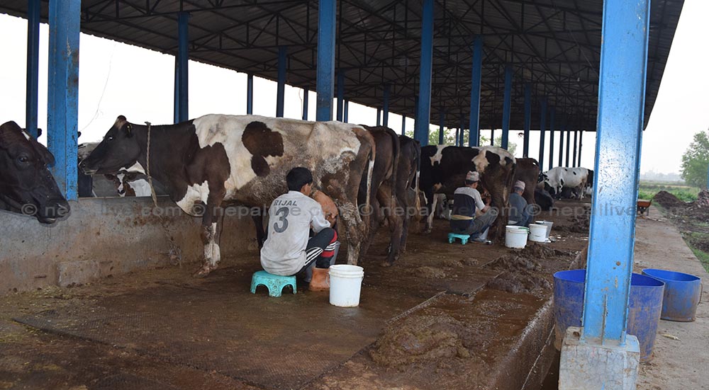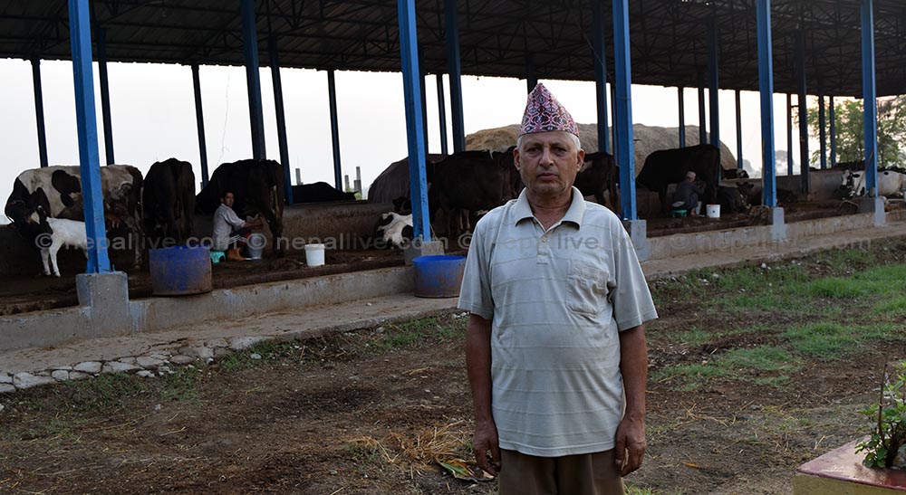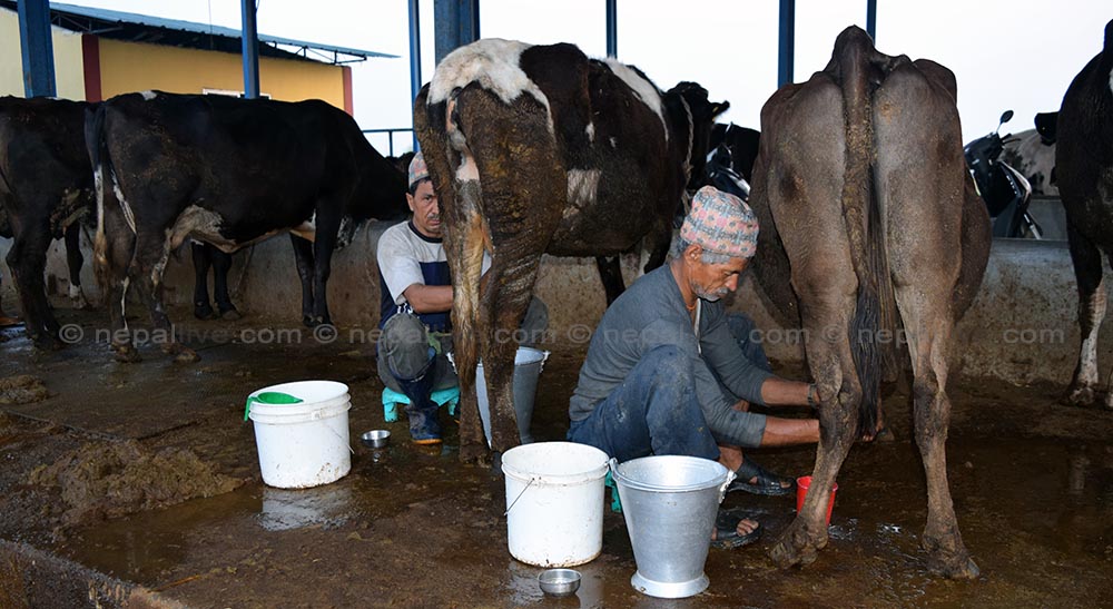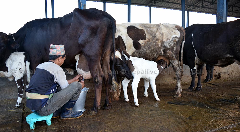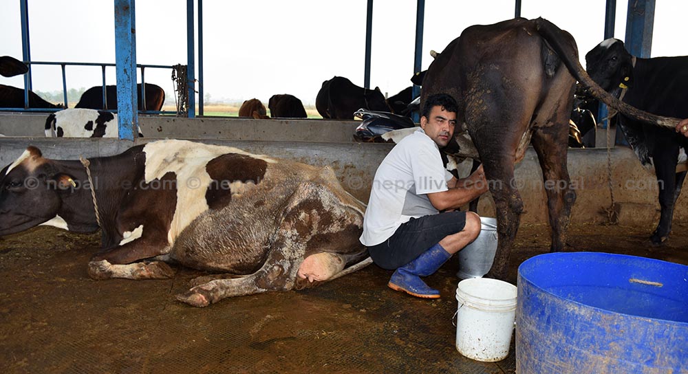 गाई दुहुदैं कृषक प्रकाश काफ्ले।