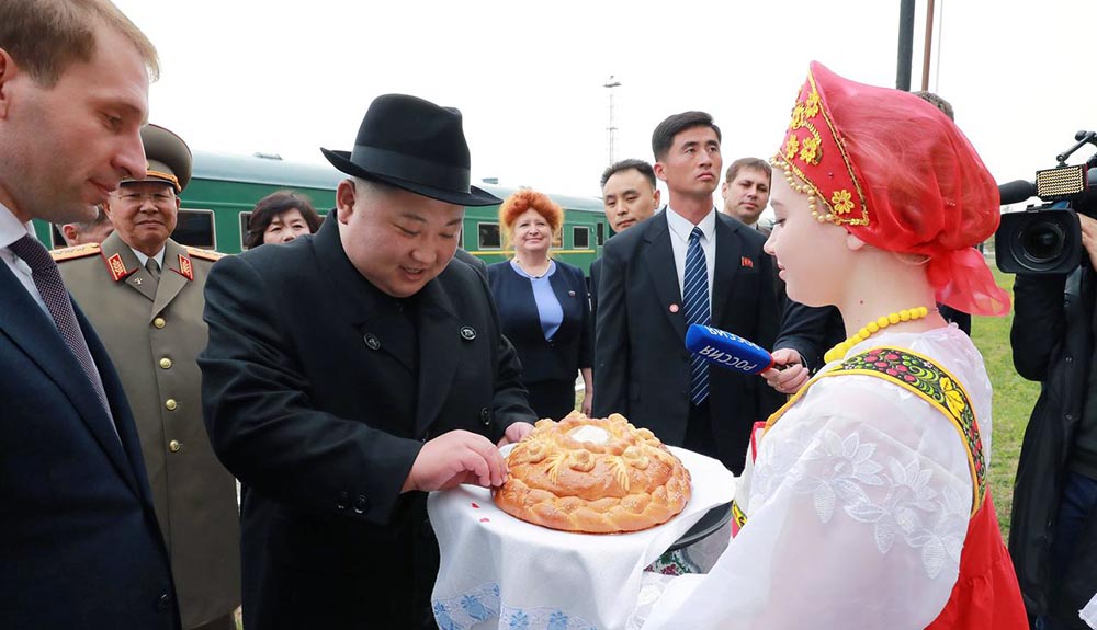 किमलाई रुसी सीमा शहर खसानमा स्थानीय नागरिकले परम्परागत शैलीमा भव्य स्वागत गरेका रुसी समाचार समितिले जानकारी दिएको छ। देशमाथि लागेका आर्थिक प्रतिबन्धका कारण सङ्कटमा परेका किमले गत वर्षदेखि कुटनीतिक गतिविधिलाई तिव्रता दिएका छन्। रुसी राष्ट्रपति पुटिनले नेता किमलाई रुस भ्रमणका लागि निम्ता गरेका थिए।