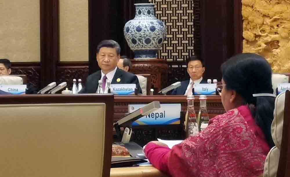 सम्मेलनको दोस्रो सत्र उच्चस्तरीय वार्तामा नेपालका राष्ट्रपति विद्यादेवी भण्डारीले सम्बोधन गरिन्। उनले सगरमाथाको देश नेपालको सरकार तथा जनताका तर्फबाट न्यानो अभिवादन तथा शुभेच्छा ल्याएको भन्दै महत्वपूर्ण कार्यक्रममा सहभागिताका लागि आमन्त्रण गरेकामा चिनियाँ राष्ट्राध्यक्षलाई धन्यवाद दिइन्।