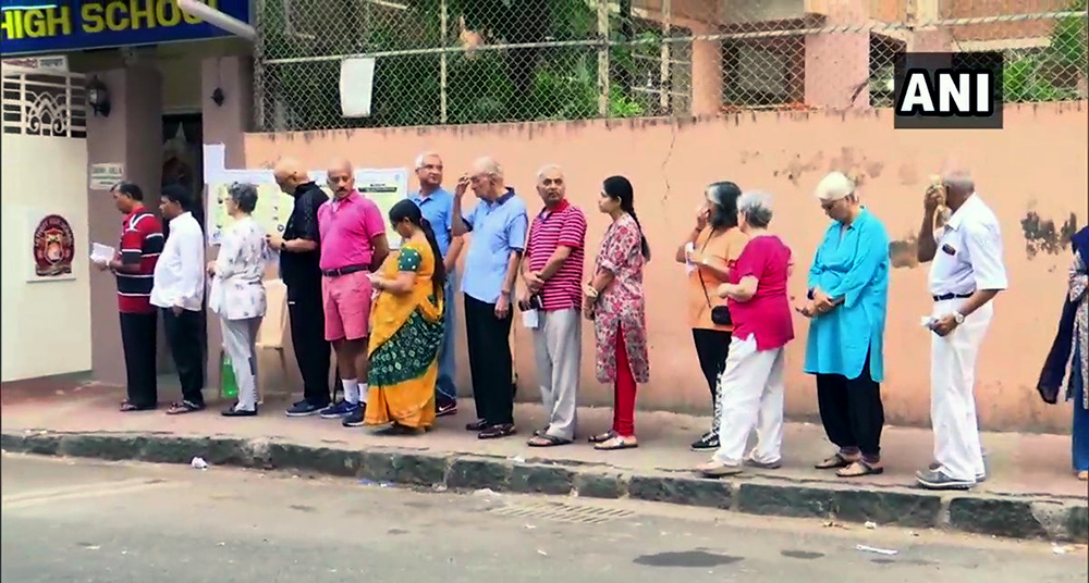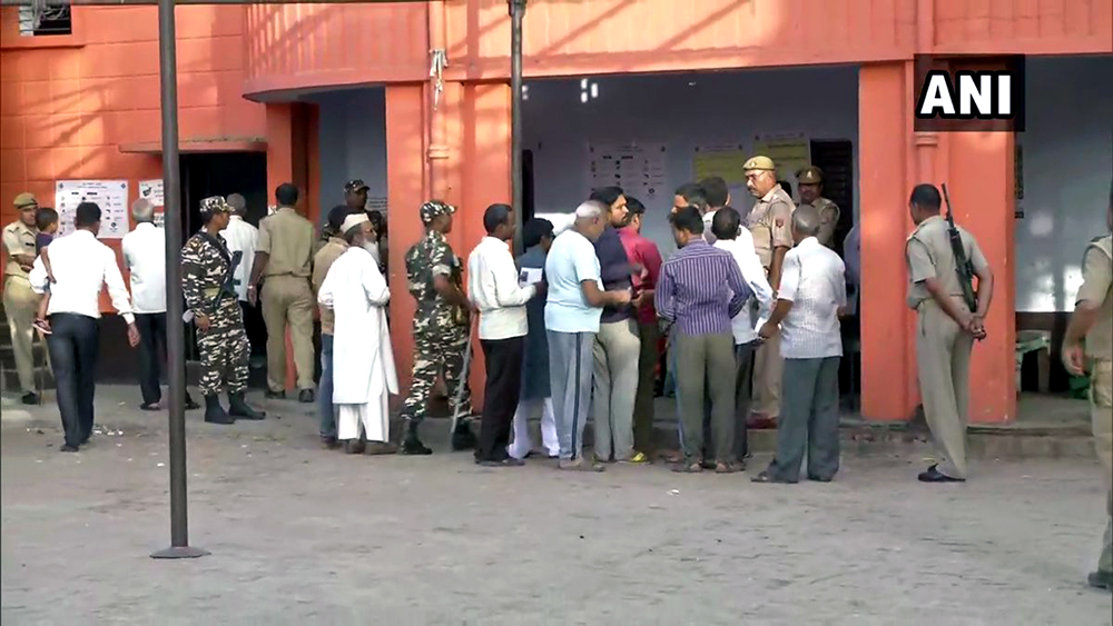 तस्बिर- जम्मु-काश्मीर राज्यकाे एक मतदान केन्द्रमा मतदाताहरुकाे लाइन।
