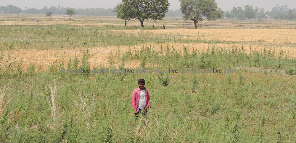 वडाध्यक्षलगायतको समूहले हडपेको कमलावतीको जग्गा देखाउँदै उनका आफन्त। उनी उभिएको ठाउँको जग्गा वडाध्यक्ष र भू-माफिया मिलेर हडपेका छन्।