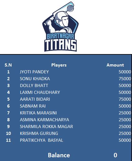 ५. विराटनगर टाइटन्स – पारस लुनिया (स्वामित्व), सरिता मगर (मार्की खेलाडी)