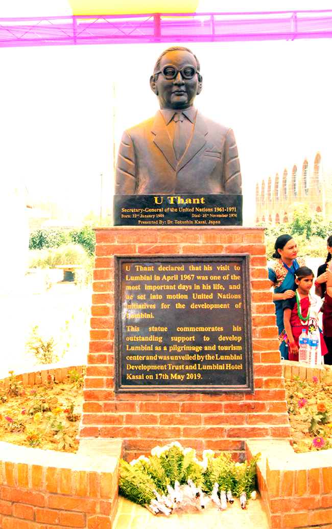 लुम्बिनीको विकासमा सबैभन्दा बढी योगदान रहेको संयुक्त राष्ट्र संघका पूर्व महासचिव उत्थान्तको सालिक आज एक कार्यक्रमका बीच लुम्बिनीमा अनावरण गरिएको हो।