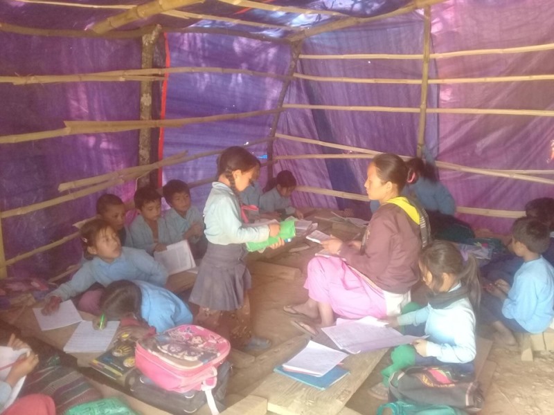 धेरै कागज थुप्रिए विद्यार्थी आफैं उठाएर फाल्छन्। बस्नको लागि बेञ्च पनि छैन। काठका टुक्रा र फल्याक ओछ्याएर बस्छन् उनीहरू। नजिक घर हुनेले घरबाट चकटी लिएर आउँछन्। टाढा घर हुनेहरू भने काठको टुक्रा ओछ्याएर दैनिक ६ घण्टा बिताउने गर्छन्।