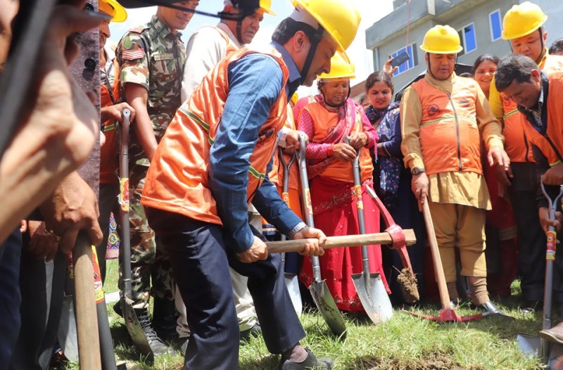 सडक निमार्ण कार्यक्रम श्रम मन्त्री गोकर्ण विष्ट आफैंले बेल्चाले खनेर शुभारम्भ गरेका थिए।