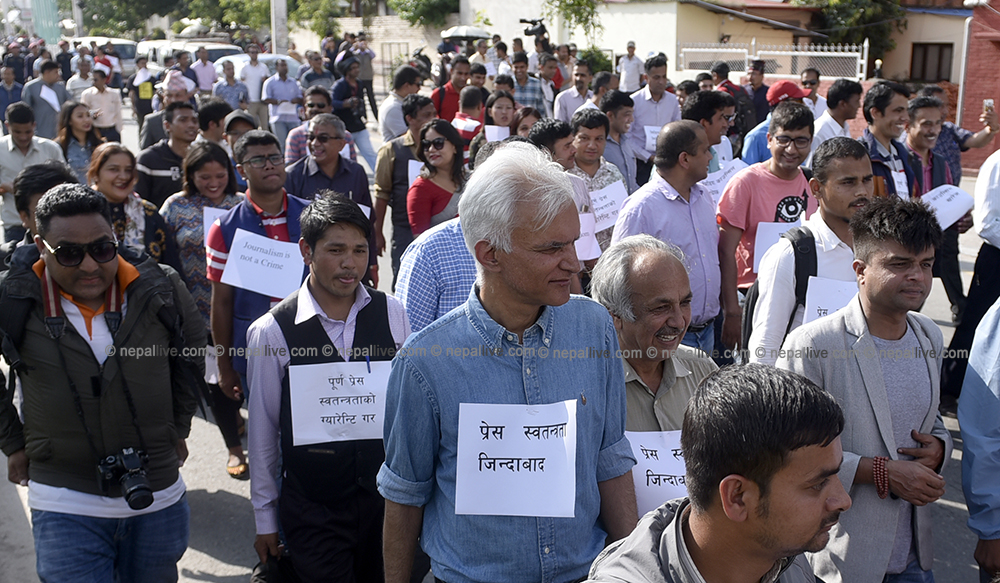 संविधान प्रदत्त प्रेस स्वतन्त्रता खोस्ने गरी सरकारले विधेयक ल्याएको भन्दै केही समयदेखि पत्रकारहरु आन्दोलनमा छन्।