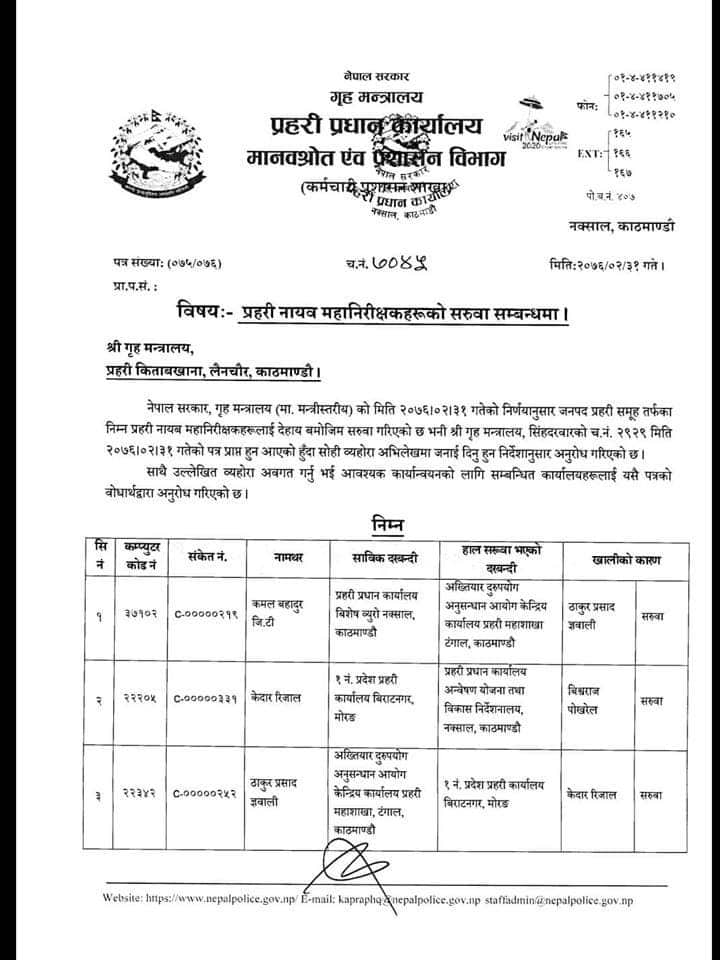 १९ डिआइजीको सरुवा, को कहाँ? [सूचीसहित]