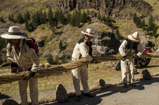 कामको पहिलो दिन सबै पुरुषहरु पुलको छेउमा जम्मा हुन्छन्। उनीहरु सुरुमा छोटाछोटा डोरी बनाउँछन्।